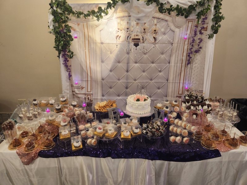 Our sweets table is more than just desserts — it’s an eye-catching centerpiece, featuring hand-selected candies, chocolates, pastries, and baked delights styled to impress your guests. Paired with our service table, you’ll enjoy a seamless blend of beauty and functionality, where guests can mingle, serve themselves, and savor every bite in style. ( CONTACT FOR AVAILABLITY & PRICING )
